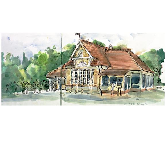 Pavillion Cafe, Dulwich Park, London - ink pen and watercolour